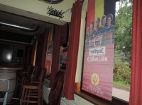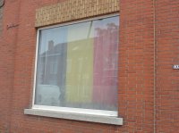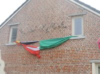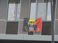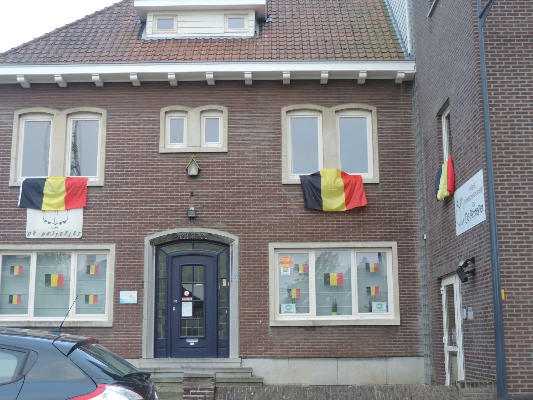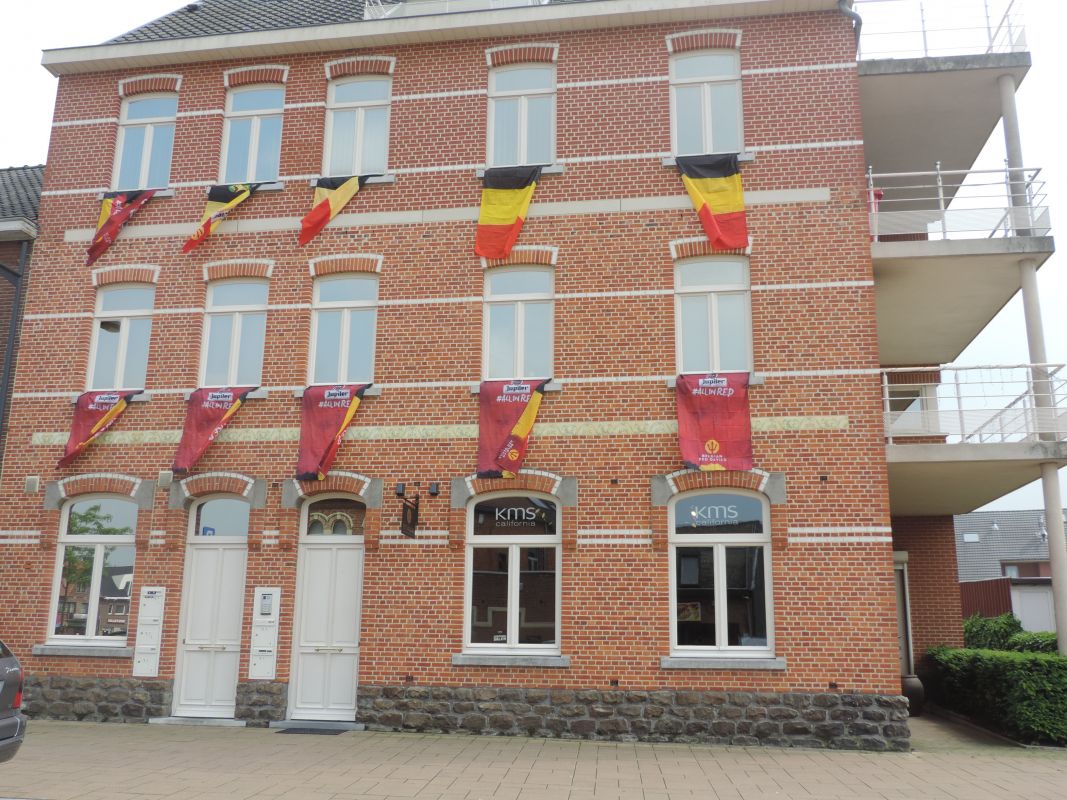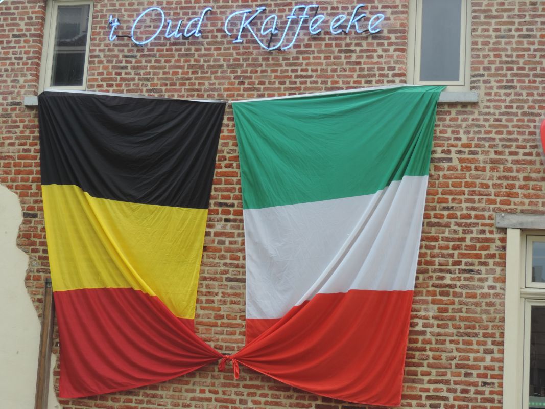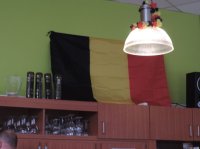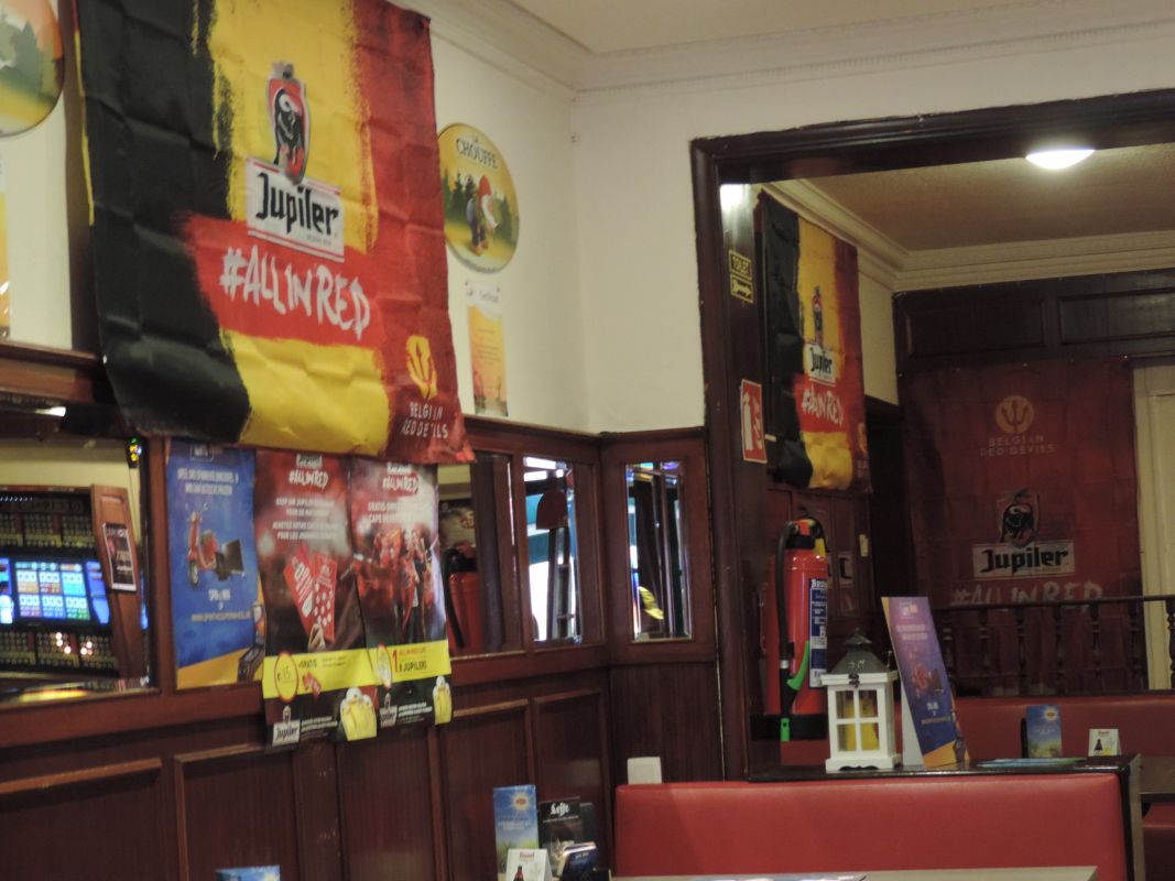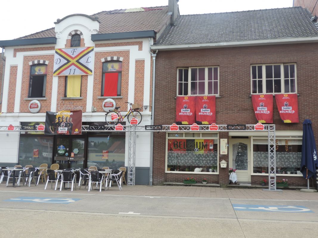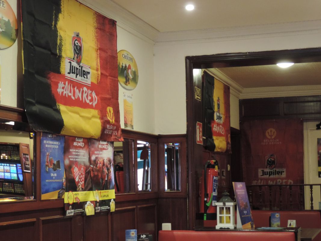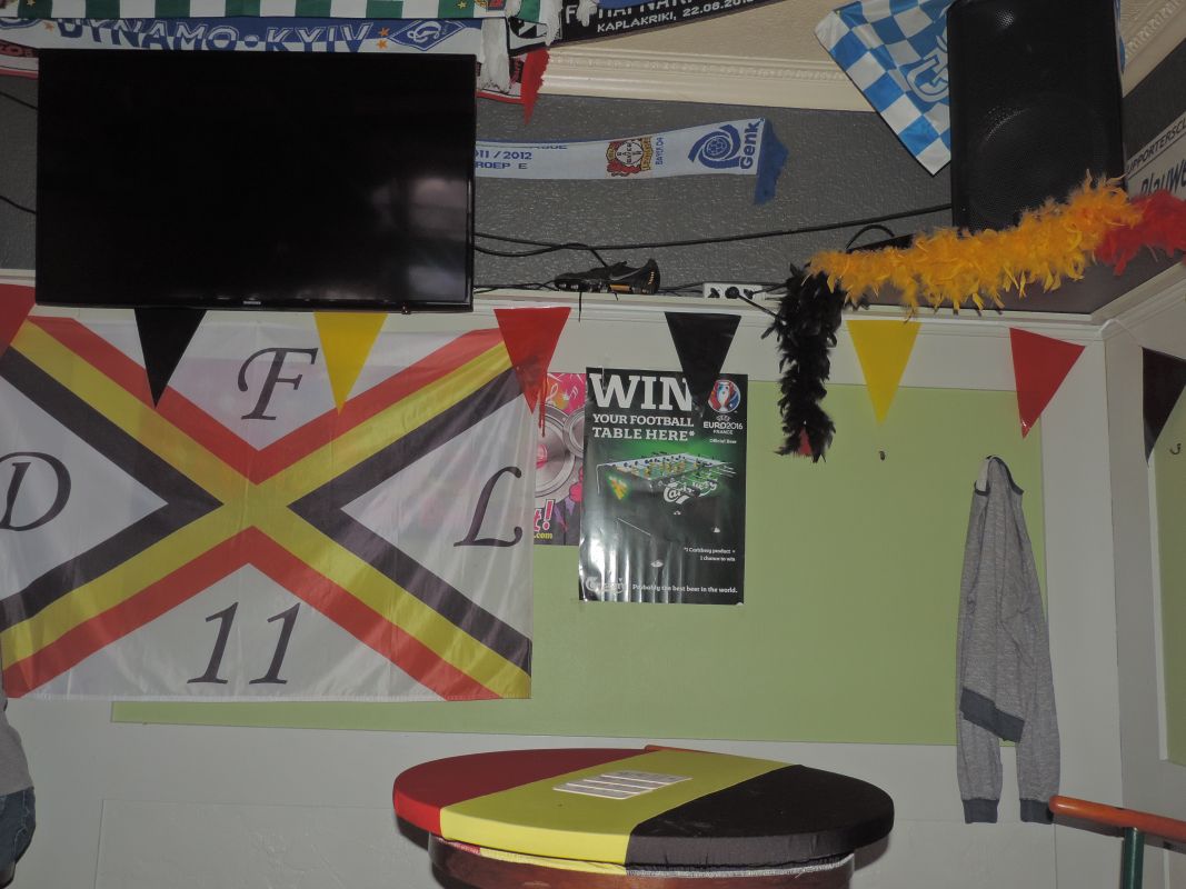 Het café wordt versierd door de supportersclub van de Rode Duivels.