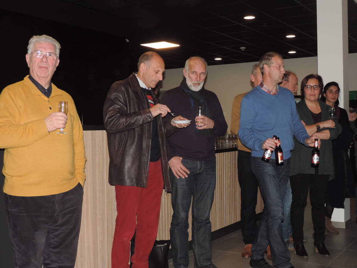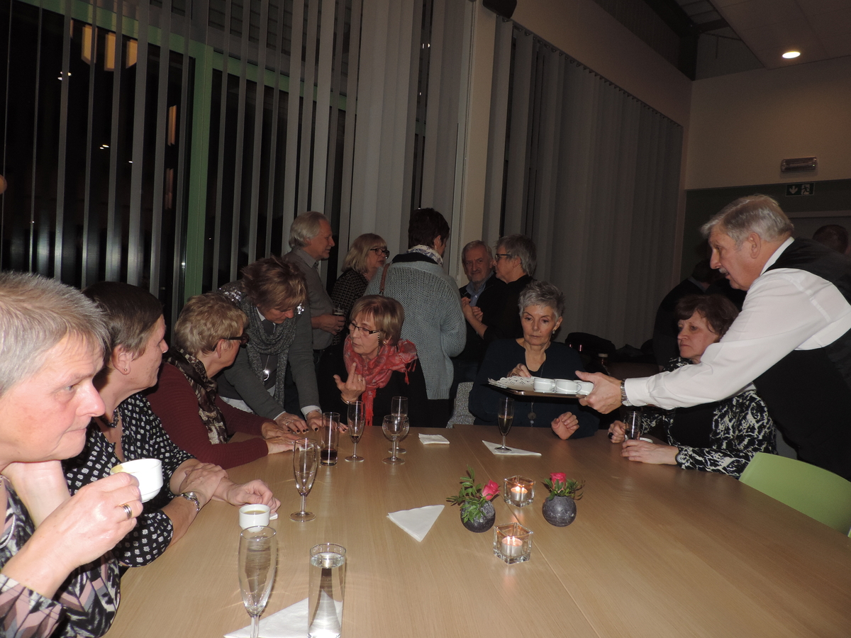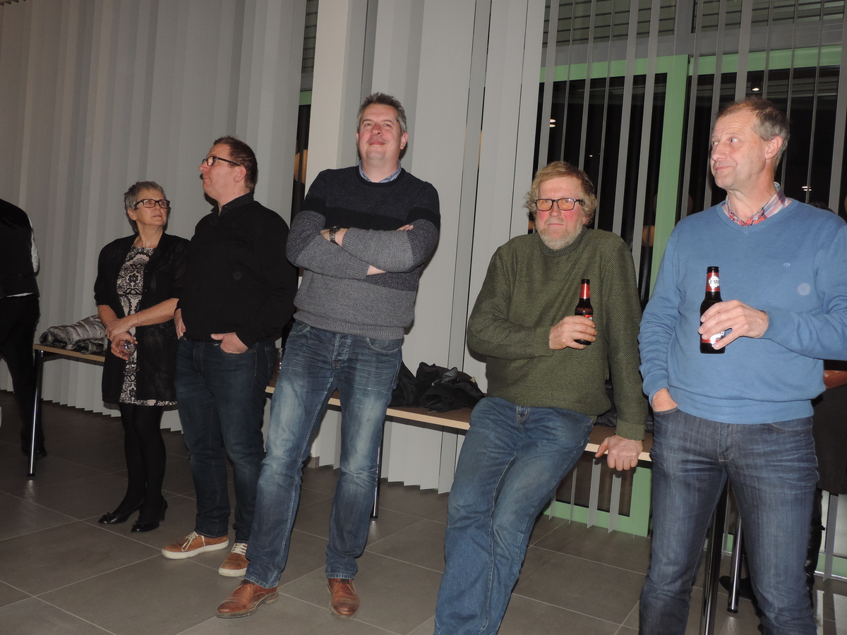 Met een glaasje en een hapje werden het personeel, zowel deze van Zolder als ’t Vlot en de Heg, en de vrijwilligers verwelkomd voor de jaarlijkse nieuwjaarsreceptie van ’t Weyerke. Een avond gezellig samenzijn. En ja bij een nieuwjaarsreceptie hoort ook een toespraak. Ook dit jaar kon men er niet onderuit om naar de toespraak van directeur Jan Thiry te luisteren. Gelukkig geeft hij ze steeds op z’n eigen humoristische manier. De voorbije jaren had hij het steeds moeten hebben over de komende bouwwerken en hoe men geld bijeen zamelde om het gedeelte dat niet terugbetaald wordt te kunnen financieren. Dit jaar liet hij de bouwwerken achterwege, niet dat er niet meer(ver)gebouwd wordt. Dit jaar haalde Jan de warmte van ‘de warmste week’ nog eens aan. Met dank aan de zovele initiatieven waardoor er meer dan 23.000 € ingezameld werd. Hiermee kunnen weer verschillende dromen in de woningen vervuld worden. Maar ook de warme kerstmarkt is iets unieks als je ziet hoeveel personeel en vrijwilligers hier samen een echt kerstsfeer brachten. De uitnodigende standen waren een streling voor het oog en de ideale gelegenheid om jezelf, of nog beter iemand anders, te verwennen. Nu al deed hij een oproep aan verenigingen en handelaars om de kerstmarkt 2017 mee te komen versterken zodat het, door z’n eenvoud, tot een geweldig gebeuren kan uitgroeien. Uniek voor de streek. Na de toespraak werd er nog gezellig verder genoten van de drank en de hapjes om dan traditioneel te eindigen met een frit en/of een hamburger. AC