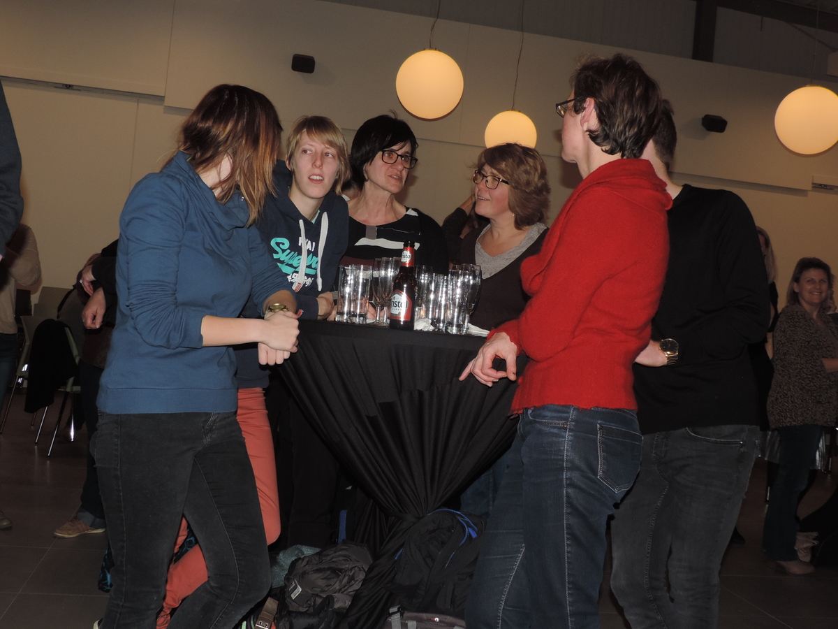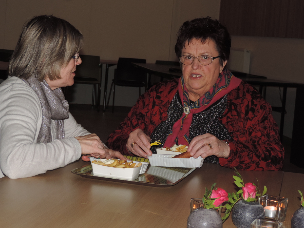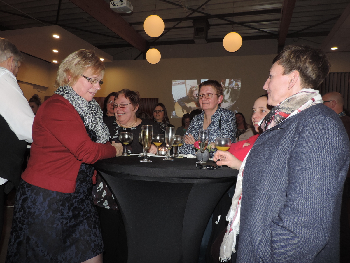 Met een glaasje en een hapje werden het personeel, zowel deze van Zolder als ’t Vlot en de Heg, en de vrijwilligers verwelkomd voor de jaarlijkse nieuwjaarsreceptie van ’t Weyerke. Een avond gezellig samenzijn. En ja bij een nieuwjaarsreceptie hoort ook een toespraak. Ook dit jaar kon men er niet onderuit om naar de toespraak van directeur Jan Thiry te luisteren. Gelukkig geeft hij ze steeds op z’n eigen humoristische manier. De voorbije jaren had hij het steeds moeten hebben over de komende bouwwerken en hoe men geld bijeen zamelde om het gedeelte dat niet terugbetaald wordt te kunnen financieren. Dit jaar liet hij de bouwwerken achterwege, niet dat er niet meer(ver)gebouwd wordt. Dit jaar haalde Jan de warmte van ‘de warmste week’ nog eens aan. Met dank aan de zovele initiatieven waardoor er meer dan 23.000 € ingezameld werd. Hiermee kunnen weer verschillende dromen in de woningen vervuld worden. Maar ook de warme kerstmarkt is iets unieks als je ziet hoeveel personeel en vrijwilligers hier samen een echt kerstsfeer brachten. De uitnodigende standen waren een streling voor het oog en de ideale gelegenheid om jezelf, of nog beter iemand anders, te verwennen. Nu al deed hij een oproep aan verenigingen en handelaars om de kerstmarkt 2017 mee te komen versterken zodat het, door z’n eenvoud, tot een geweldig gebeuren kan uitgroeien. Uniek voor de streek. Na de toespraak werd er nog gezellig verder genoten van de drank en de hapjes om dan traditioneel te eindigen met een frit en/of een hamburger. AC